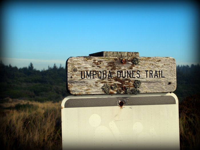 The Oregon Dunes National Recreation Area stretches about 40 miles along the coast from Florence to Coos Bay and is known as a paradise for hiking, wildlife viewing, camping, horseback riding, and Off-road vehicle use. The dunes are easily accessible from one of the many view points, day use parks or trail heads along Route 101. We chose to hike the Umpqua dunes trail which starts in the parking lot of Eel Creek campground (where our National Park pass once again came in handy, otherwise it costs $5/day to park here because it’s part of a national recreation area) and traverses through a quarter mile of low evergreen shrubs before opening up to a spectacular dune landscape.